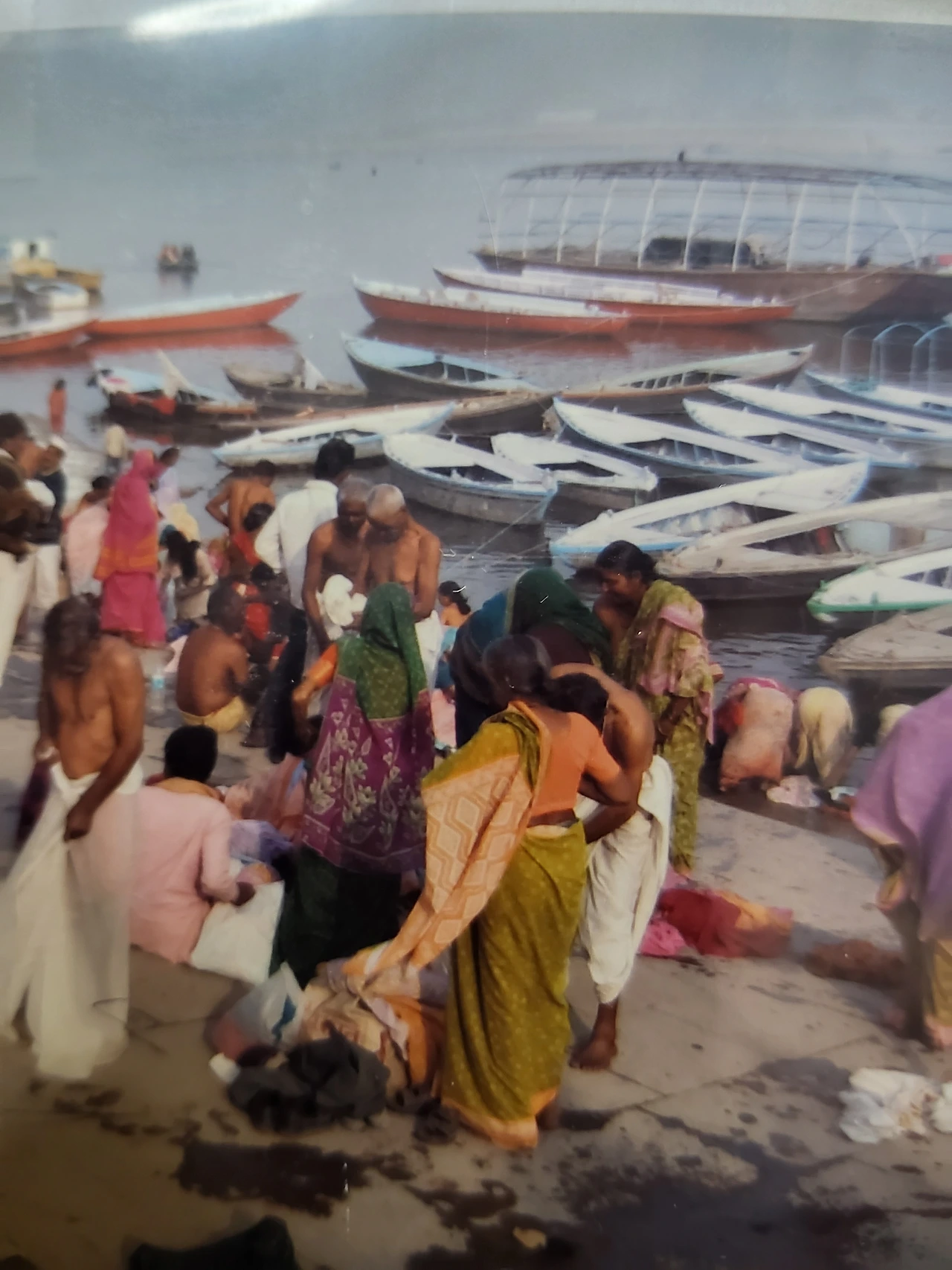 갠지스강은 힌디어로 ‘강가(Ganga)’라 하며, ‘빠르게 흐른다’는 뜻을 지닌다. 힌두인들에게는 신성한 어머니의 강으로 여겨지며, 불경에도 그 이름이 언급된다. 순례자들은 영하의 추위에도 아랑곳하지 않고 강물에 몸을 담그거나 머리를 감는다. 죄가 씻기고 소원이 이루어진다고 믿기 때문이다. 심지어 일부 주민들은 오염된 강물을 마시기까지 한다. 많은 이들은 이 강물을 물병에 담아 고향으로 가져가, 함께하지 못한 가족과 친지들에게 나누어준다. 그들은 강가의 물을 머리와 이마에 찍어 바르며 복을 기원한다.