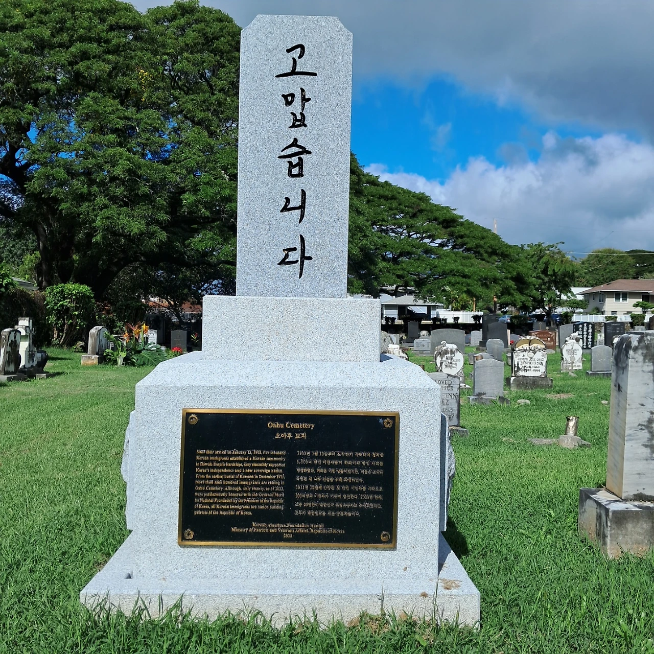 화와이 초기이민자 묘지에 헌정된 독립 유공탑(양재준님포함)