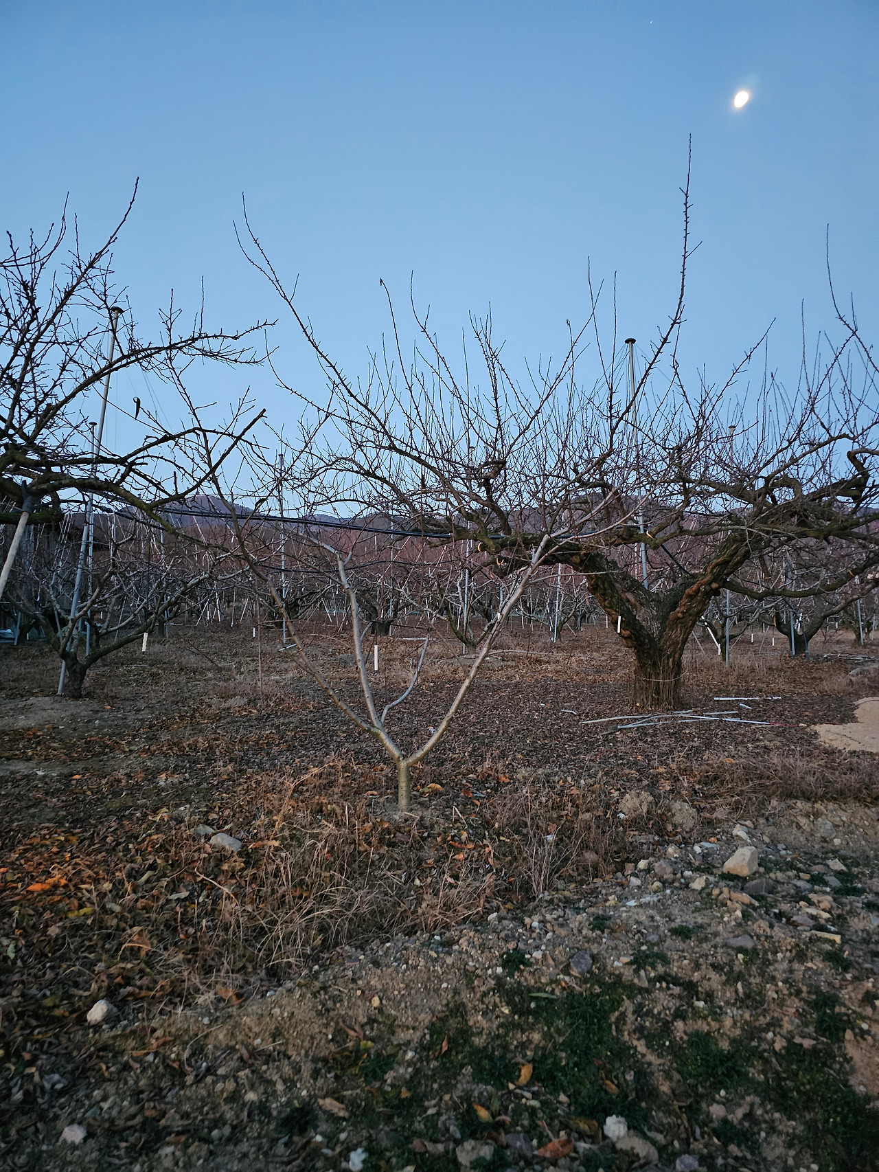 자두밭의 나무는 위에서 아래로 잘려져 나가고