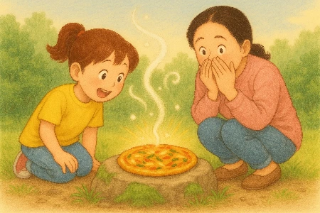 다혜는 집에 와서 엄마에게 피자 이야기를 했어요.