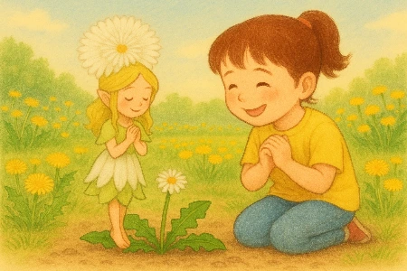 꿈속에서도 울고 있는데 민들레 요정이 다가왔어요.