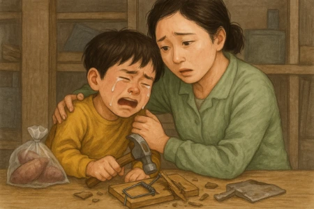 “아니, 민수야. 너…… 쥐틀을 왜 그렇게 부수니?”
