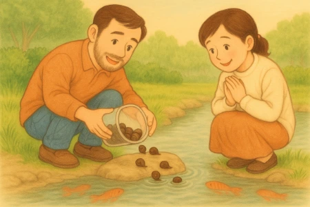 아저씨는 혼잣말을 하면서 다슬기를 모두 놓아주었어요.