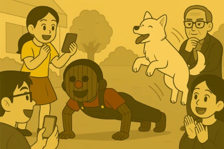 이윽고 잘내미가 맨손체조를 하다가 팔 굽혀 펴기를 했습니다.