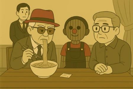 국수 면발을 하얀 수염처럼 입에 달고 한참을 생각하다가 천천히 면발을 끊었습니다.