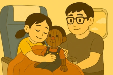 효지는 비행기에 오르자마자 졸렸습니다.