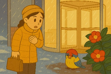 아줌마는 새벽에 출근하는 병원 입구에서 작은 새 한 마리를 보았어요.