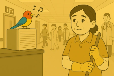아줌마는 새벽부터 시작하여 오전에는 병원 청소를 했어요.