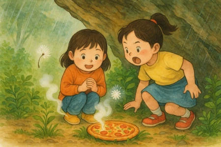 씨앗에서 ‘도로롱~’하는 작은 소리와 함께 연기가 나더니 피자 한 판이 딱 나오지 뭐예요.