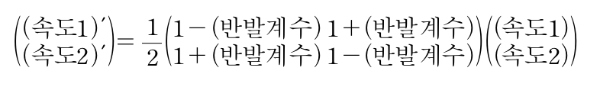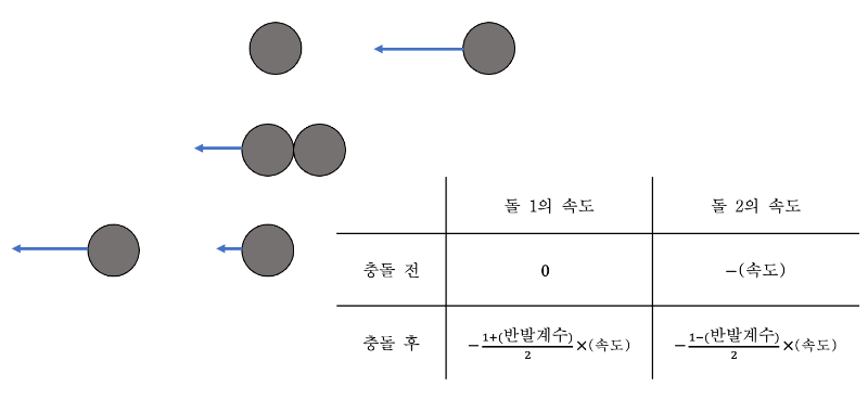 이제 충돌 전후 두 돌의 속도를 계산하면, 아래와 같다.