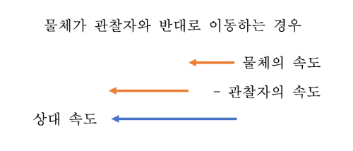 물체가 관찰자와 반대로 뒤로 이동하는 경우, 관찰자는 물체와 관찰자의 속력을 더한 만큼의 속력으로 물체가 뒤로 가는 것을 경험한다.