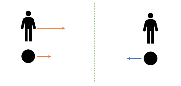 두 경우 모두, 관찰자가 인식하는 물체의 속도는, 지면을 기준으로 한 관찰자와 물체의 속도들 간의 차이와, 크기가 같다. 그러나, 그 방향은 반대가 된다.