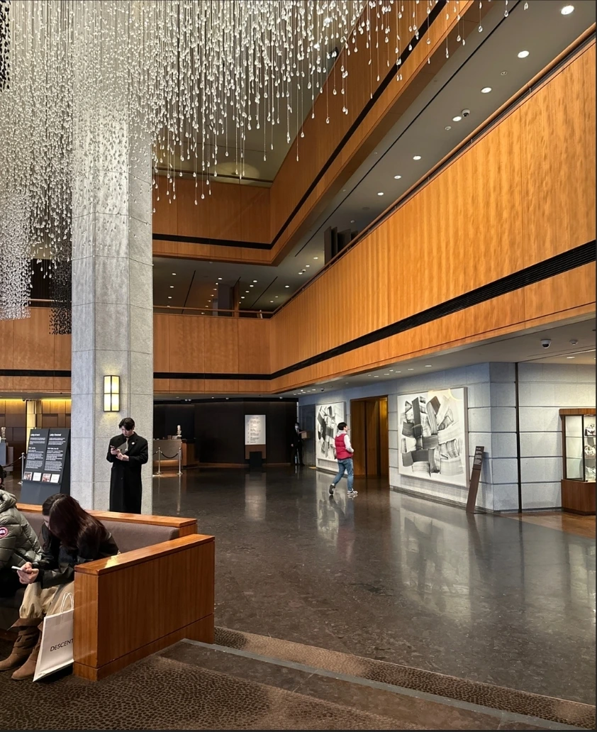 천장의 높이에 따라 빛이 다르게 보이기도 한다. 일반 아파트의 거실에서는 등이 대개 천장에 직접 부착되고, 빛은 벽과 바닥에 즉시 닿아 빠르게 공간을 채운다. 전체를 고르게 밝히지만 그림자나 레이어가 거의 없다. 반면 천장이 높은 공간의 조명은 직접 내려오지 않고 천장에 숨거나, 간접적으로 벽을 타고 흐르게 된다. 조도가 낮아도 어둡지 않게 느껴지고, 자연광이나 조명의 투사각과 그림자 깊이가 달라지면서 다양한 레이어가 쌓여 입체감을 만든다. 공간안에 빛이 천천히 머문다는 인상이 만들어진다. 밝음 보다는 잔향있는 어둠으로 고급스러움을 부각시킨다. 결국 고급스러운 공간은 밝은 공간이 아니라, 빛이 천천히 움직이는 공간이다.