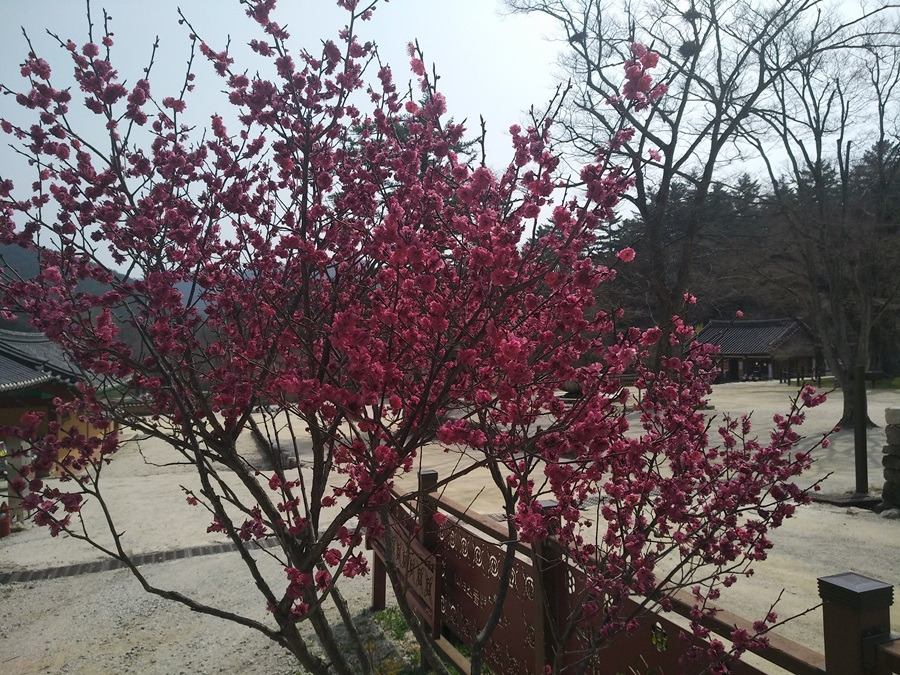 이곳은 어디일까요? 상쾌한 공기를 맞으며 호젓한 전나무숲을 지나다 보면 어느새 봄꽃이 다채로운 산사가 나타납니다. 궁금하시죠?