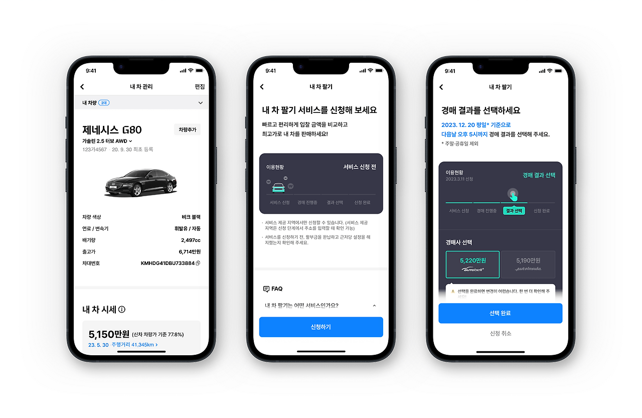 특히 신청에서부터 낙찰까지 비대면으로 진행돼 부담 없는 거래가 가능하고 흥정이나 감가 없이 안심하고 맡길 수 있어 소비자들의 관심을 모으고 있습니다. 이는 앱에서 한 번 신청으로 내 차를 고가로 매입하기 위한 국내 최대규모의 입찰 경매가 열리는 셈이죠. 최종 견적은 일주일 동안 유효합니다. 이 기간 중 소비자는 차량 매각을 고민하고 현명한 선택을 내리면 됩니다.