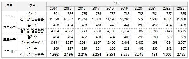 *출처 : 문화체육관광부 (프로스포츠 경기단체 자료)