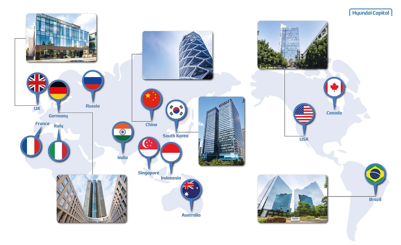 현대캐피탈은 현대자동차그룹의 주요 사업 지역인 미국, 중국, 영국, 캐나다, 독일, 브라질 등 전 세계 14개국에 18개 법인을 두고 활발한 해외 사업을 펼치고 있습니다.