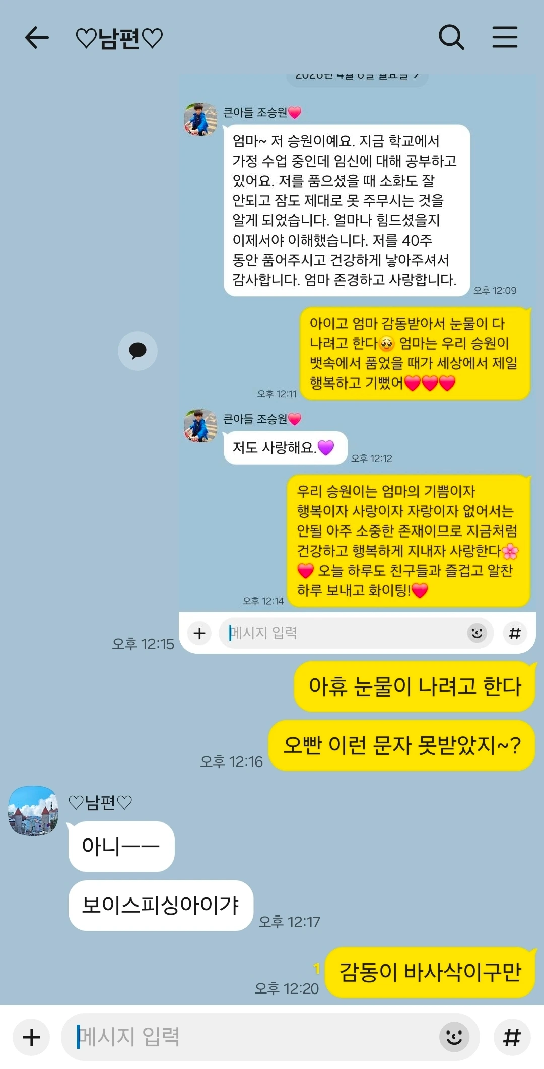 수업 중일 장남에게 카톡이 왔다.