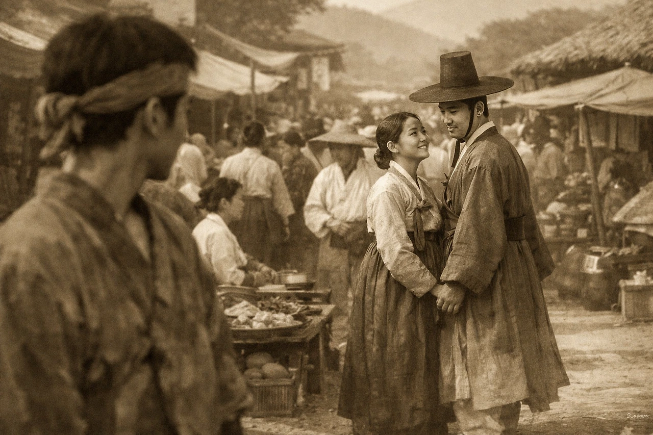 엿장수 소리, 생선 비린내, 사람들의 웅성거림이 섞여 흘렀다.
