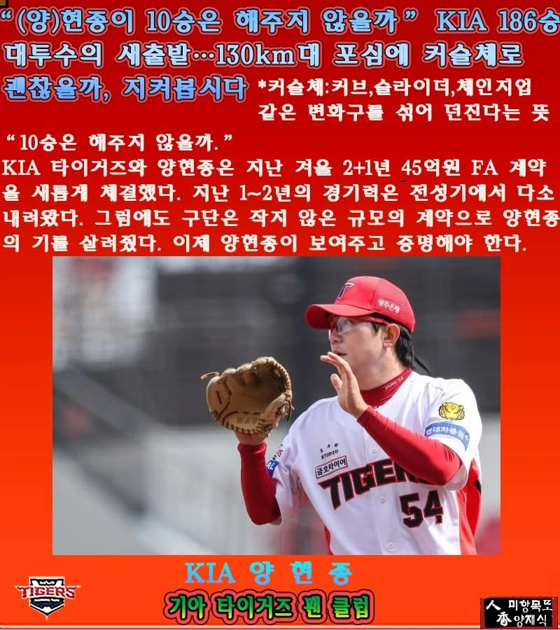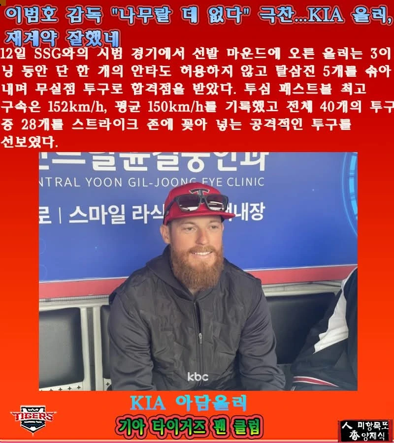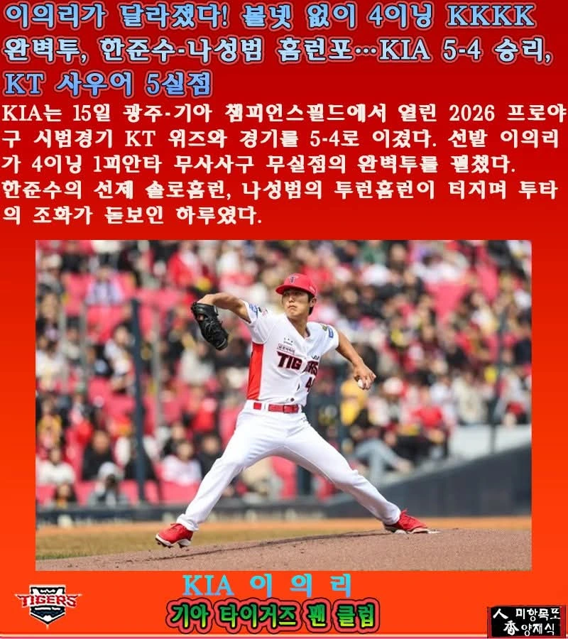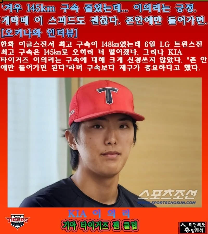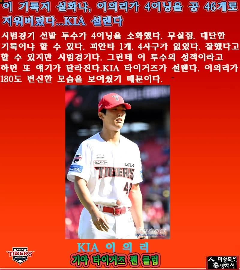 걱정했던 오선발 중 한명인 제구가불안했던 이의리는 동계훈련때 구속은 좀 줄어도제구가잡혔다고하더니