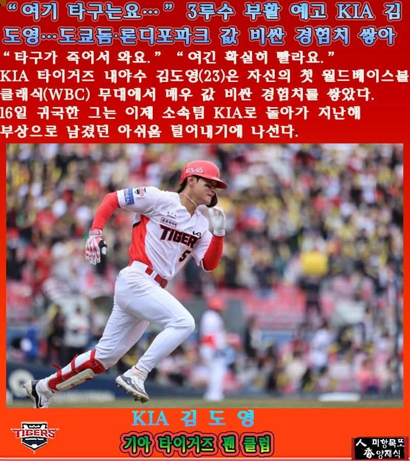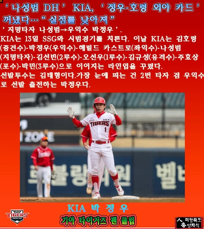 모든 것은 이범호감독과 코치진들의 전략 전술 아래 이뤄지는 것이겠지만요 잘되길 기도하고 응원하자고요 기아타이거즈 화이띵!!!