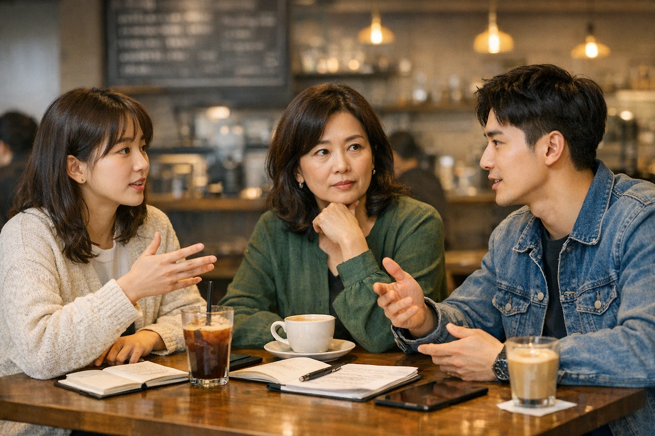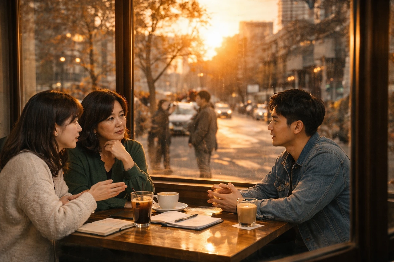 사람들은 각자의 컵을 앞에 두고 앉아 있었지만, 대화는 어느 순간부터 커피 맛과는 전혀 상관없는 방향으로 흘러갔다.