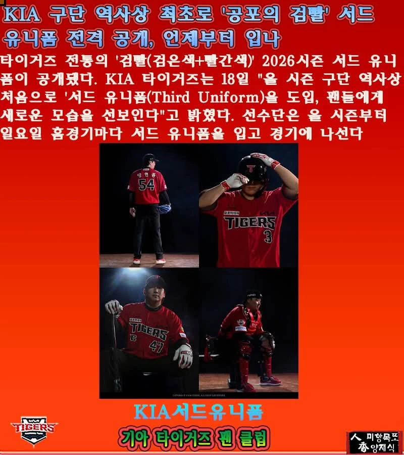 마지막으로 올해 바뀐 기아타이거즈유니폼(홈구장에서 착용하는 서드 유니폼)을 소개(해태타이거즈시절 공포의 검빨 유니폼)하며,