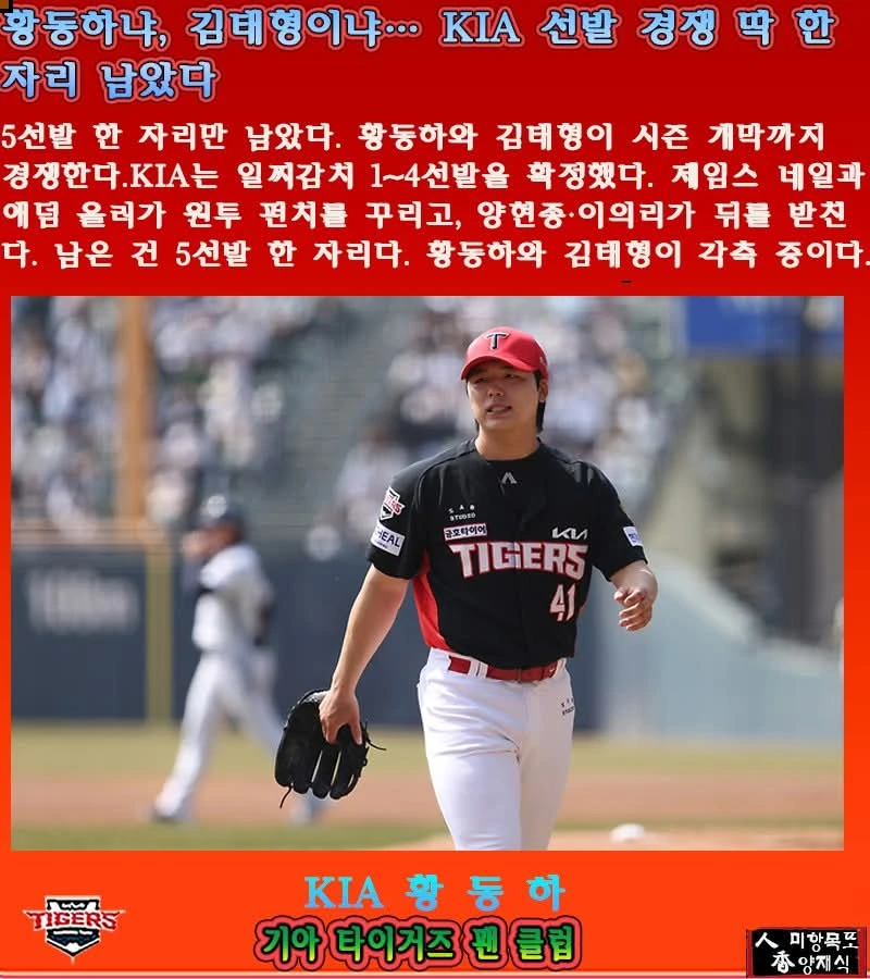 기아의 오선발 네일, 올러, 양현종, 이의리는 확정이고 (황동하, 김태영)은 각축중입니당