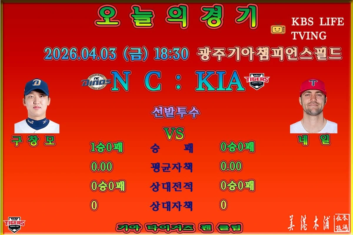 오늘경기는 광주 홈경기장에서 네일이 NC를 상대합니다