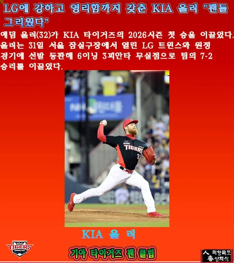 화요일 올러는 LG전에서 6이닝 무실점으로 막고