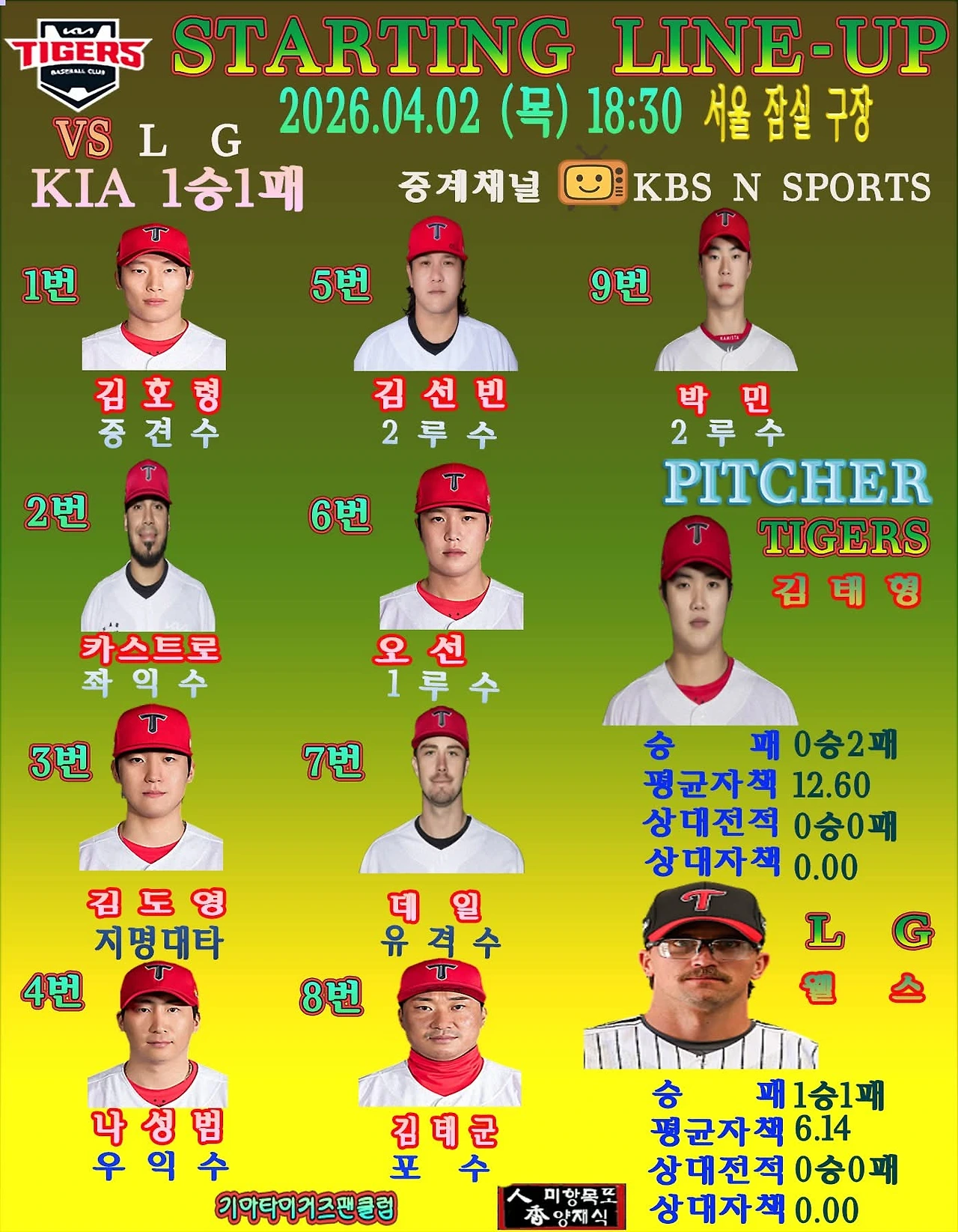초반부 기아가 치르는 경기들 보면서 이범호 감독과 타격코치들이 구상하는 그림이 무엇인지 같이 그려보도록 하겠습니다~^^*