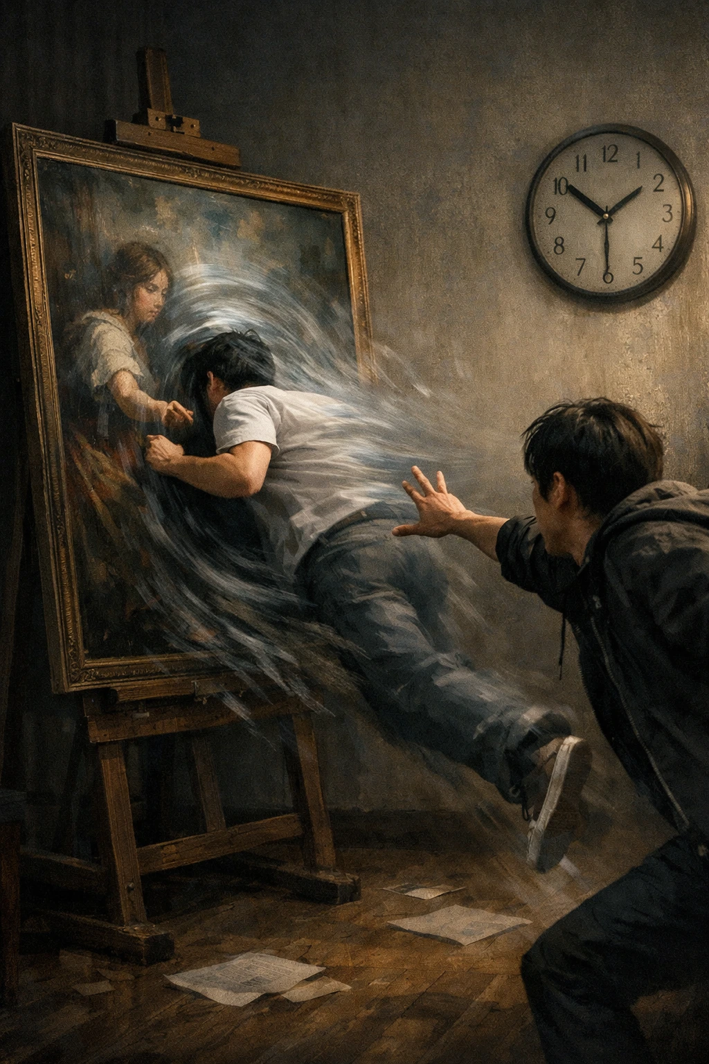 그림 속 세계는 단순한 휴식처가 아니라, 현실의 모든 요구와 기대에서 벗어난 안주와 은둔의 공간이라는 것을. 친구의 눈동자에는 망설임이 아닌, ‘여기에 남고 싶다’는 결심이 깃들어 있었다.