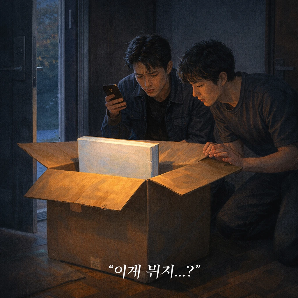 그는 잠시 망설이다 상자를 끌어안고 거실로 들였다.“이게 뭐지…?”옆에서 함께 상자를 열던 친구가 낮게 중얼거렸다. 목소리에는 긴장과 호기심이 뒤섞여 있었다.