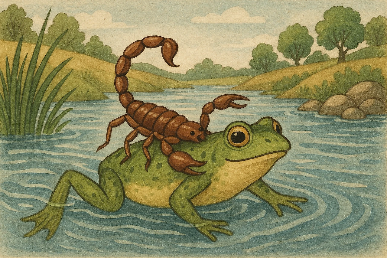 전갈이 강을 건너고 싶지만 수영을 못해서
