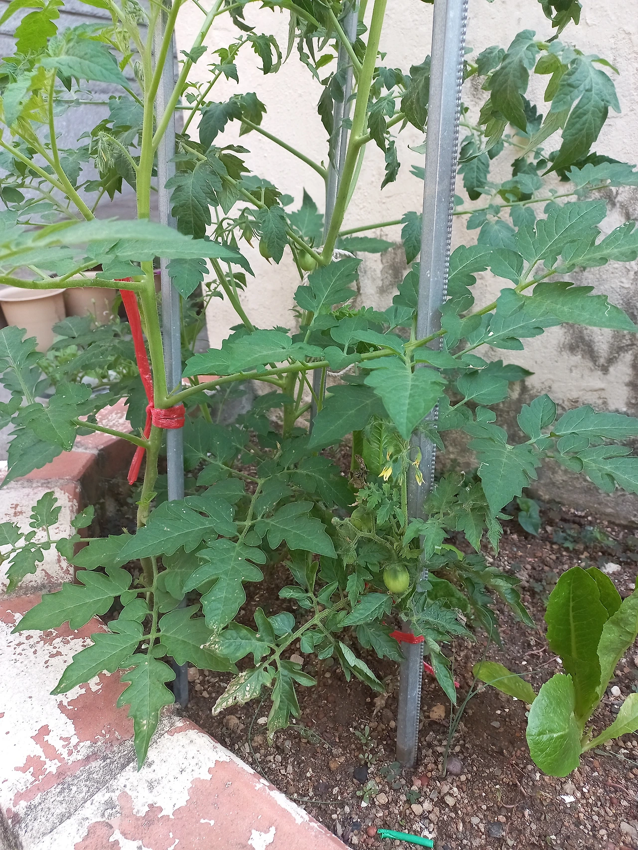 토마토 나무들이 비 오고 나니 훌쩍 자랐다.