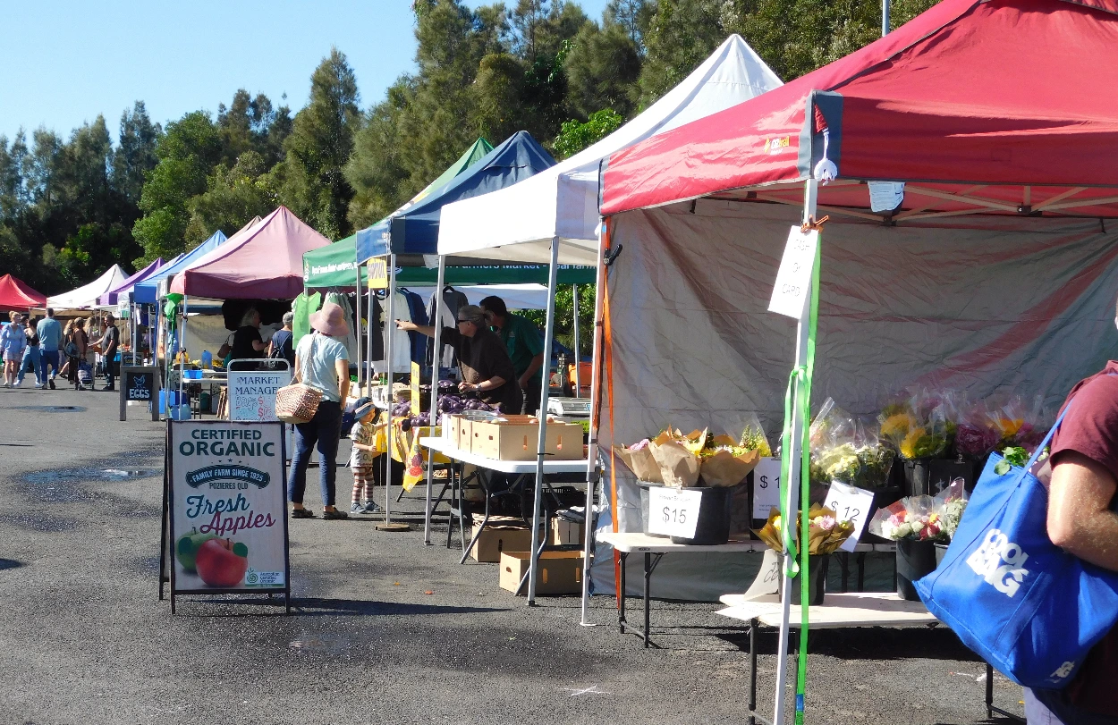 고속도로를 타고 30여 분쯤 운전하니 바이런 베이를 가리키는 도로 표지판이 나온다. 표지판을 따라 국도에 들어섰다. 차창 밖으로 채소를 키우는 밭이 보인다. 조금 더 들어가니 자동차들이 줄지어 서 있다. 시골 장이 열린 것이다. 지나칠 수 없다. 차를 세우고 들어가 본다.