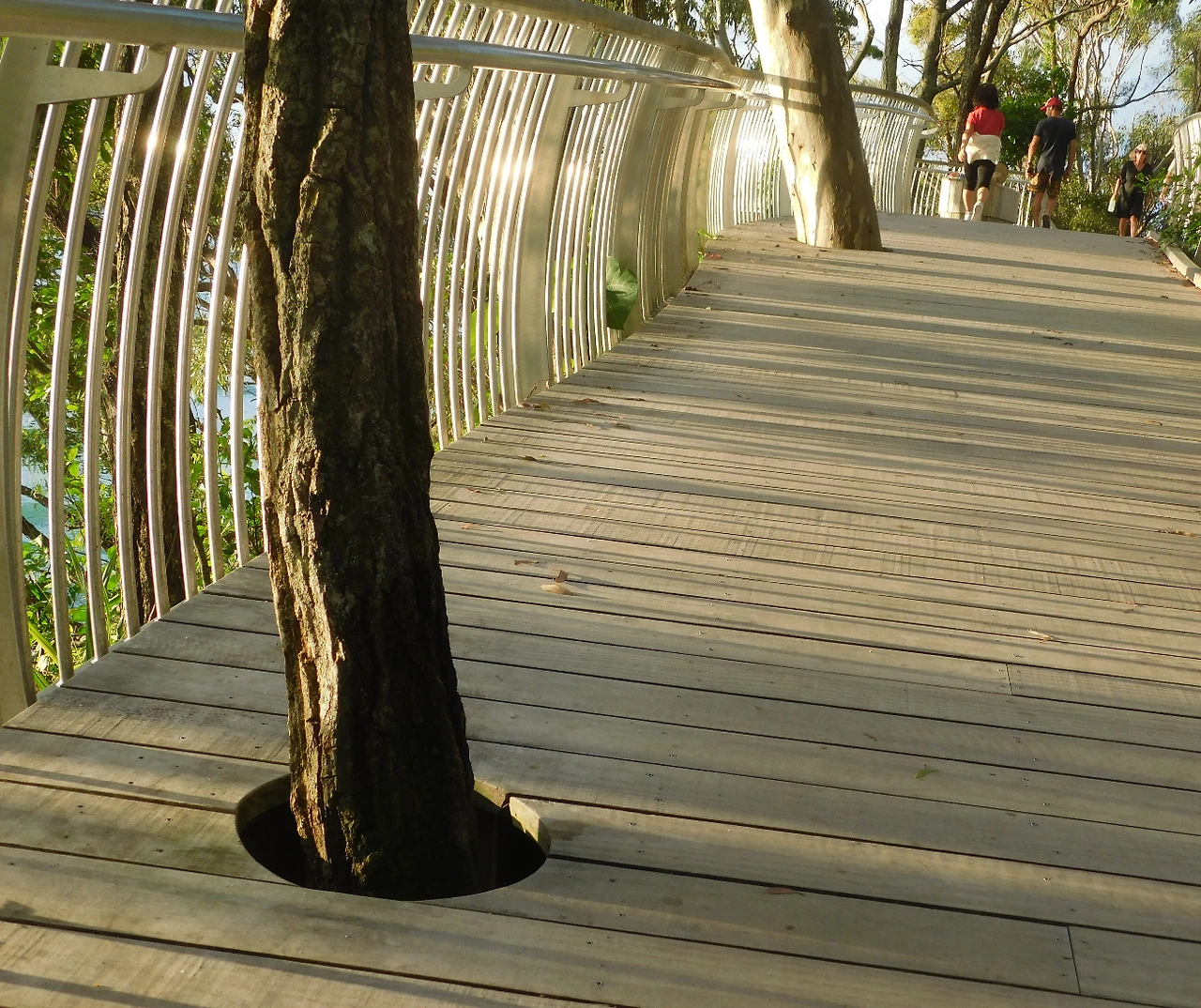 다음 날에도 같은 해변을 찾았다. 오늘은 사람들이 많이 찾는 산책로를 걷기 위해서다. 해안을 따라 조성한 산책로다. 휠체어도 다닐 수 있도록 잘 만들어져 있다. 걷는데 나의 시선을 끄는 것이 있다. 나무가 자랄 수 있도록 산책로 바닥에 뚫어 놓은 공간이다. 산책로를 조성하면서 베어져야 할 나무를 배려한 마음씨가 보인다.