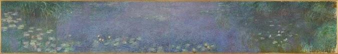 "나의 가장 아름다운 걸작은 나의 정원이다."라는 그의 말은 과장이 아니었다. 모네의 연못에는 세 개의 공간이 교차한다. 물에 비친 하늘, 유리창 너머를 보듯 바닥을 드러내는 심연, 투명하게 비치는 수면 그리고 그 위를 떠다니는 수련이다.