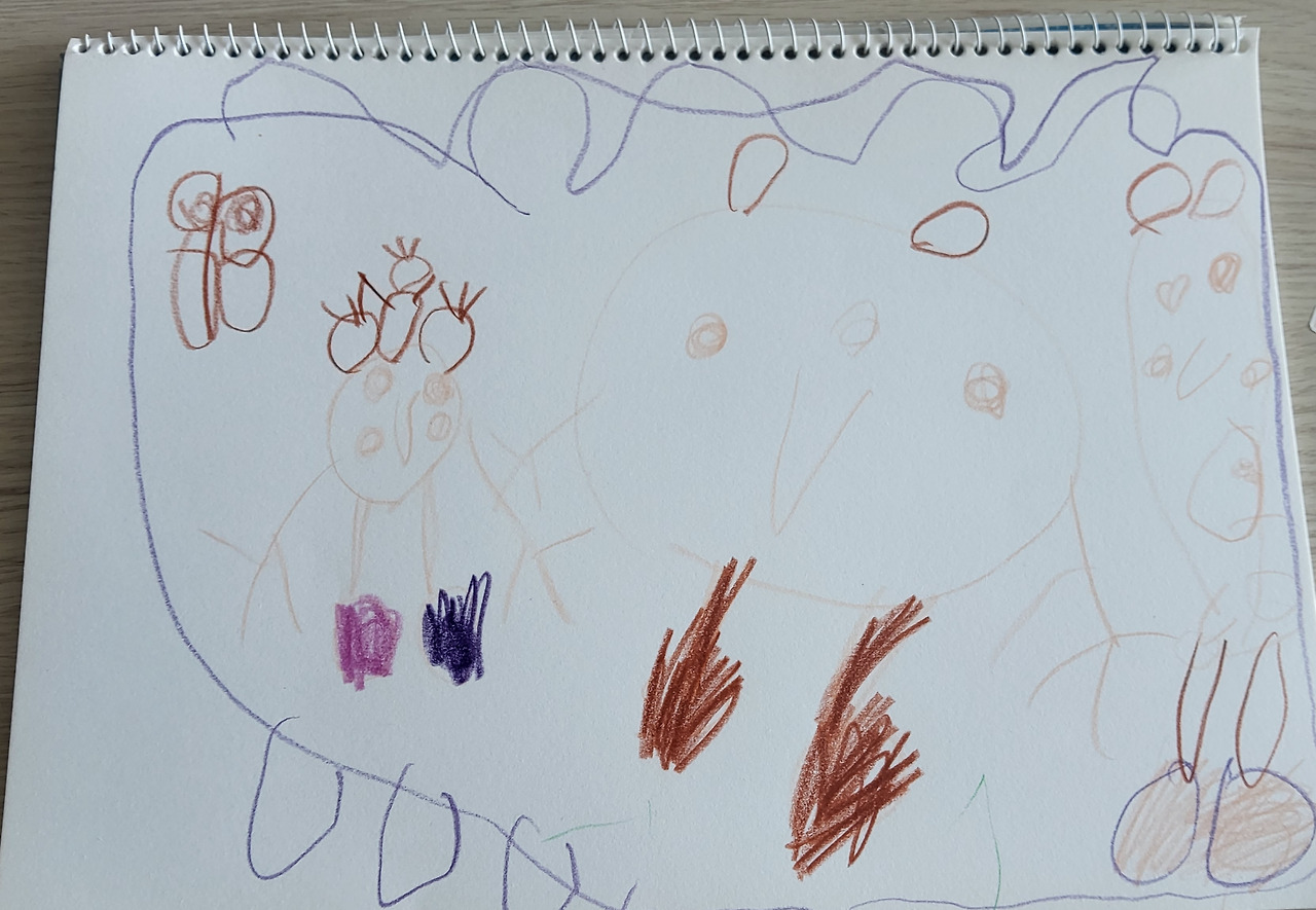 "엄마, 내가 그림 그렸어. 나, 아빠, 엄마야."