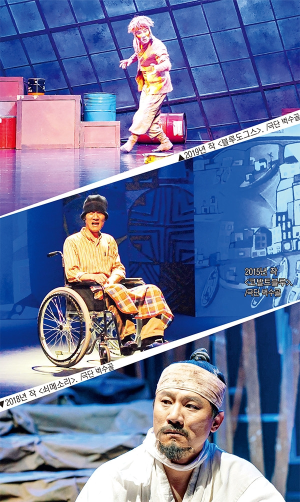 사고가 있었다. 30년 전 통영시 해평마을 열녀 설화를 바탕으로 제작된 극단 벅수골 연극 <해평 들녘에 핀 꽃> 공연 날, 조미옥 박승규 두 배우가 공연 도중 머리를 부딪혔다. 조 배우 이마에서 피가 철철 났다. 조 배우는 아무 일도 없었다는 듯 붕대로 이마를 압박하고 무대에 올랐다. 동네 주민 역으로 출연한 이규성(47 한국연극협회 통영지부장) 배우는 분장실에서 벗었던 옷을 주섬주섬 챙겨입고 다시 무대에 섰다. 우여곡절 끝에 공연이 마무리된 뒤 객석에서 박수갈채가 이어졌다. 온몸에 전율이 흘렀다. 1992년 12월 8일, 그의 나이 열아홉 때 일이었다. 장구를 쳐 사물놀이나 풍물놀이를 하는 게 꿈이었던 그는 이때 결심했다. '연극을 본격적으로 해봐야겠다.'