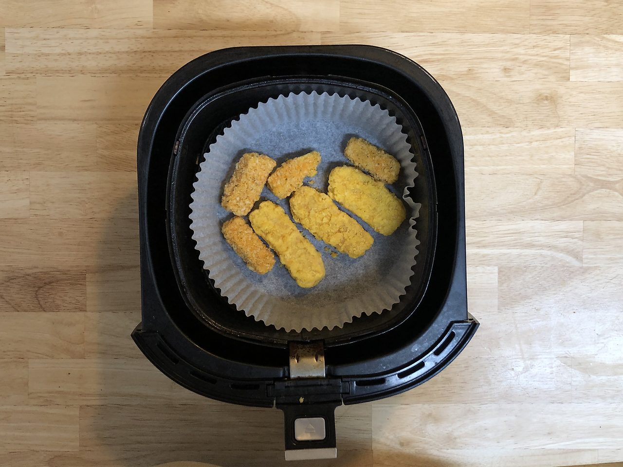 간편 냉동 식품답게, 에어프라이에 던져 놓고 10분 정도만 기다리면, 바삭하고 노릇한 두부텐더와 두부스틱을 만나보실 수 있습니다. 제품 자체에 기름이 많아서, 별도의 기름은 두르지 않으셔도 됩니다.