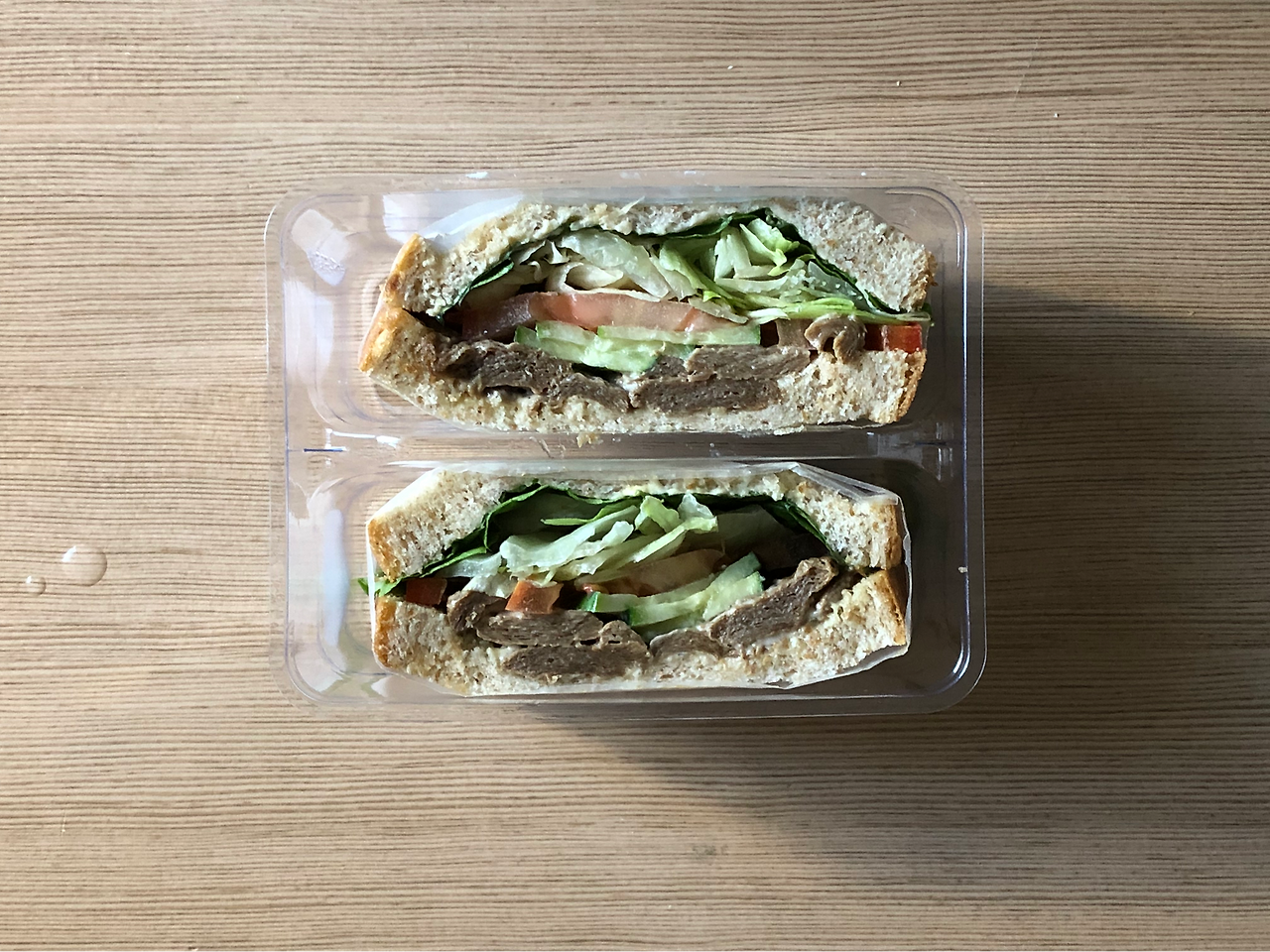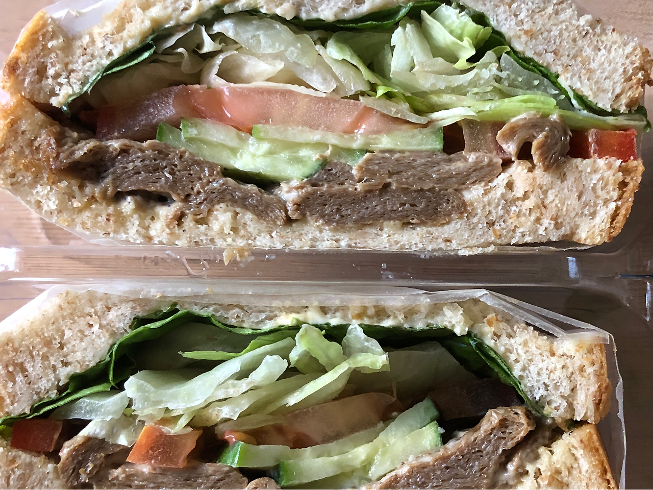 대체육은 불맛과 불고기 맛이 굉장히 강하게 나네요. 한국인에게 익숙한 그 맛입니다. 친숙해서 즐거운 달달한 간장소스 맛이요. 조직감도 상당히 흥미로웠습니다. 씹는 느낌이 굉장히 좋았고, 전체적으로 잘 만든 대체육이라는 생각이 들었습니다. 앞서 대체육은 일반육과 다른 장르라는 말씀을 계속 드렸는데요, 이 제품에서도 동일한 인상을 느꼈습니다. 만약 샌드위치에 이런 형태로 고기가 들어있다면 어떨까? 생각해보시면 그런 제품들은 많이 없어요. 차갑게 먹어야 하는 샌드위치에 덩어리 고기가 들어간다는 것은 별로 좋은 시도가 아닐 테니까요. 그런데 대체육은 가능합니다. 대체육 조직의 형태가 곧 회사의 경쟁력이고, 기술력을 가진 업체는 조직감을 조절할 수 있으니까요.