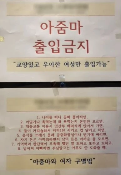 얼마 전 '아줌마 출입금지' 란 푯말을 어느 헬스클럽이 내걸었다고 해서 떠들썩했다. 수많은 헬스클럽이 경쟁하고 있어 남자 몸짱을 내세워도 장사가 안되니 저렇게 노이즈마케팅을 한 것일까?, 나이 든 여성을 혐오하는 것일까?, 젊은 여성 고객들을 상대로 순수 운동이 아닌 불순한 의도가 있는 것일까? 난 출입이 가능할까? 등 여러 생각이 들지만 모든 종류의 차별과 억압의 끝은 안 좋을 듯하다. 특히 대한민국의 아줌마를 건들다니... 용기가 가상하다.