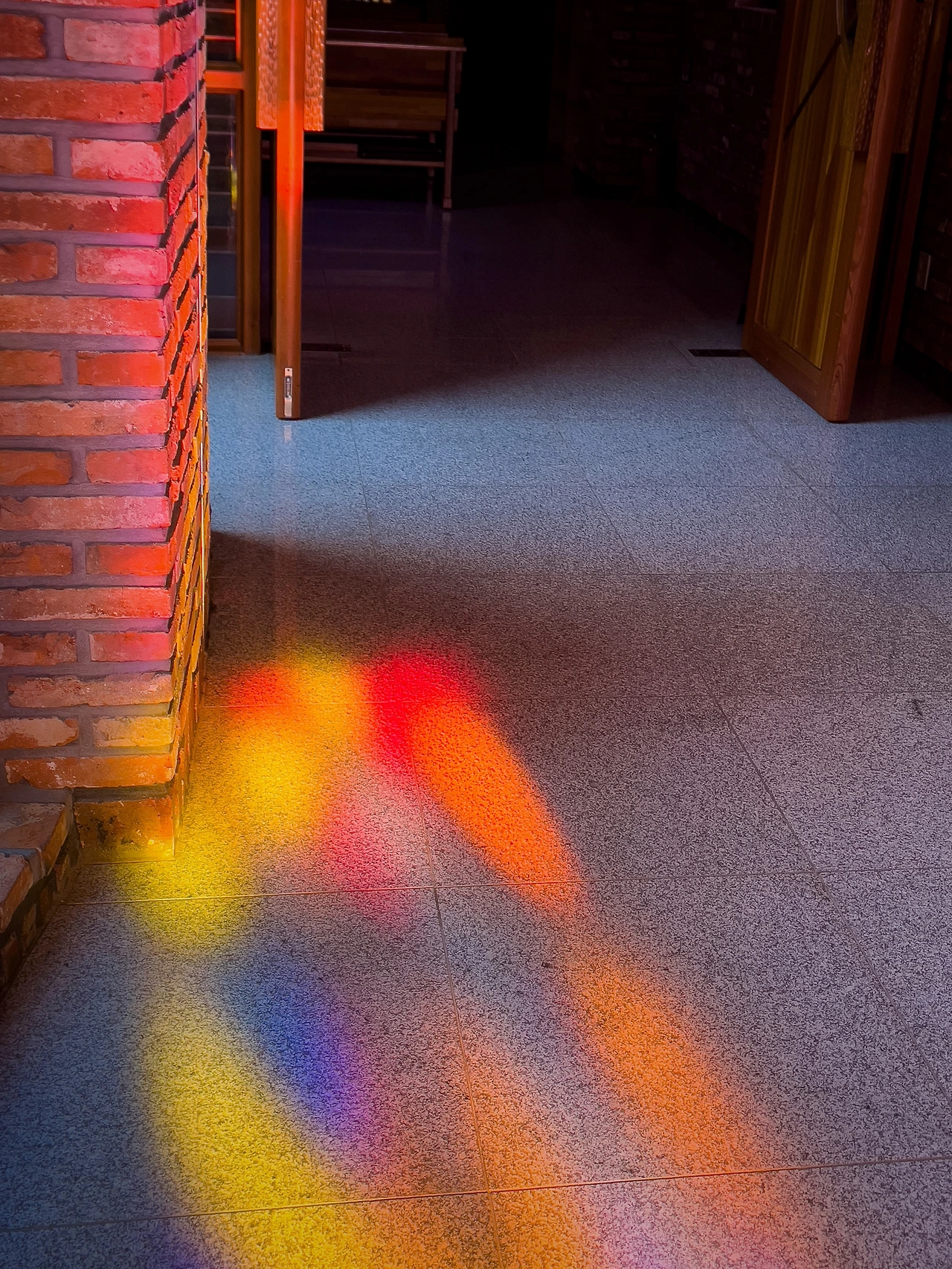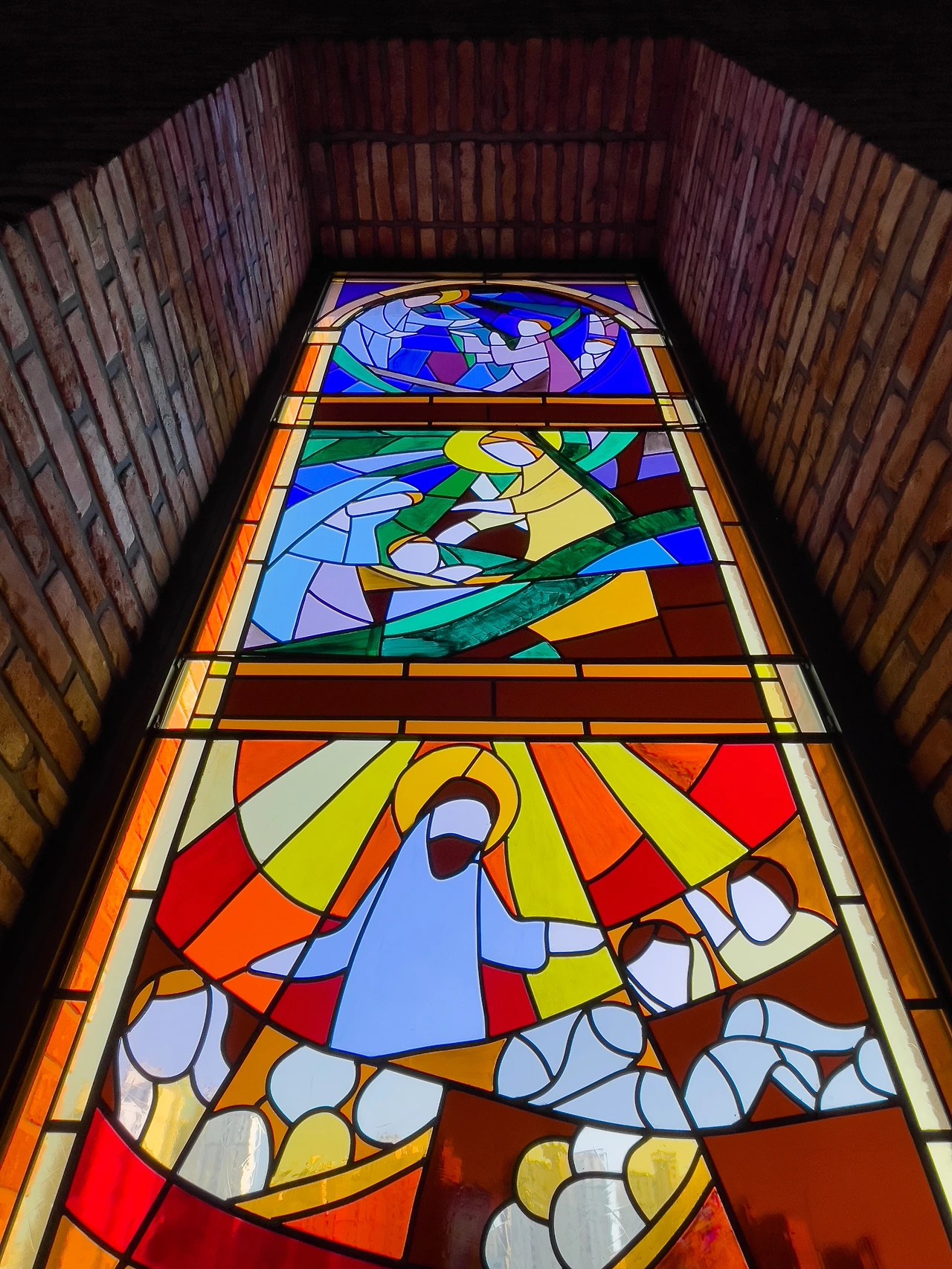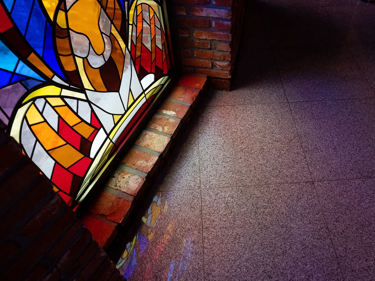 청수 성당의 스테인드글라스는 주변의 풍경을 입어서인지 좀 더 진득한 느낌의 색입니다. 맨 위층에서 내려다보며 사진을 찍고 싶었지만 저는 관계자가 아니라 출입이 제한됩니다. 빛에 홀려 셔터를 누르다가 계단을 돌아 내려옵니다.