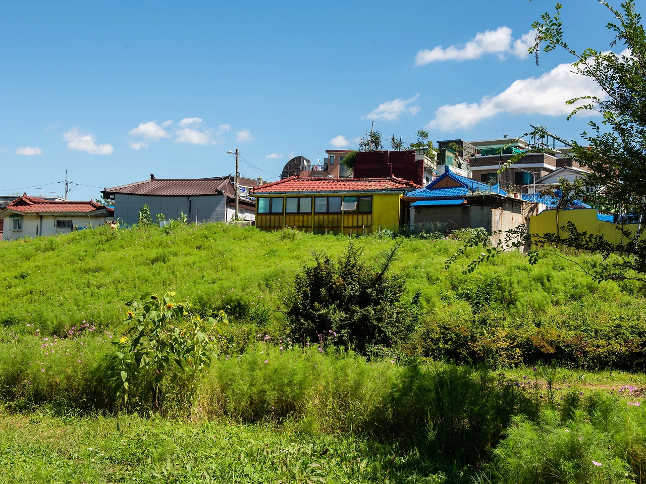 선배와 저는 헌책방 거리를 벗어나 우리나라 최초의 근대식 교육기관인 영화초등학교(구 영화학당) 방향으로 발걸음을 옮깁니다. '마음이 쉬는 공간'이라는 카페 마.쉬에서 진한 커피를 마시고 다시 걷습니다. 걷다보니 수십년을 같은 자리를 지켜온 '개코 막걸리'라는 술집도 보이고, 인천지역 일제 항거의 근원지였던 3.1운동 유적지도 보입니다. 개통이 미뤄져 끊어진 길에 푸르른 텃밭도 보입니다. 스마트폰 기본보정 프로그램에서 그림자를 (+)15 정도 올리고, 노출을 밝게 해서 사진을 완성합니다.