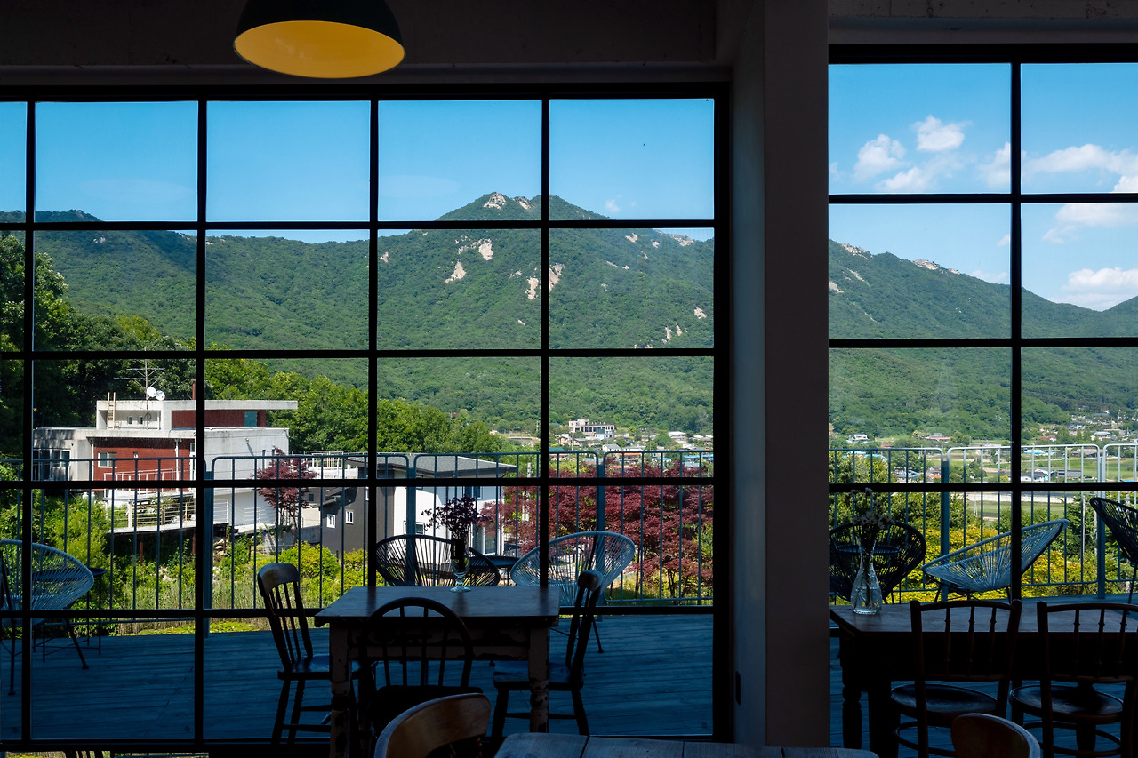 주차장에 차를 세우고 건물을 전체적으로 둘러보았습니다. 카페에 들러 달달한 초코음료를 한 잔 들고 창가에 앉았습니다. 창밖으로 보이는 우뚝 솟은 마니산과 넓게 펼쳐진 강화도 바다를 바라보고 있으니 알 수 없는 희열이 꿈틀거렸습니다. 얼른 잔을 비우고 카페 건물을 한 바퀴 돌아보았습니다. 건축가 이은석님의 미니멀한 특징이 잘 살아있으며, 멍때림을 등지고 들어오는 빛이 마치 한 폭의 그림을 만들어 내고 있었습니다.