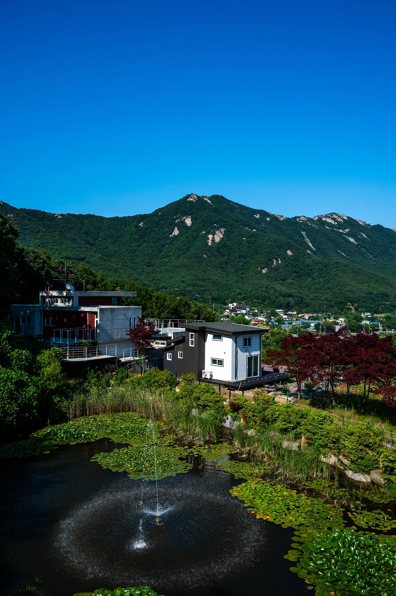 초지대교를 건너 동막 해수욕장 바닷길을 따라가다 보니 작은 시골길로 접어들게 되었습니다. 알고 찾아오지 않는 이상 쉽게 방문하기는 어렵겠다는 생각이 들었습니다. 그러나 멋진 공간을 본 후에는 그 생각이 착각이었다는 것을 깨달았습니다. 구불구불한 작은 언덕길을 지나 절을 끼고 올라가니 '멍때림 채플'이 나타났습니다.