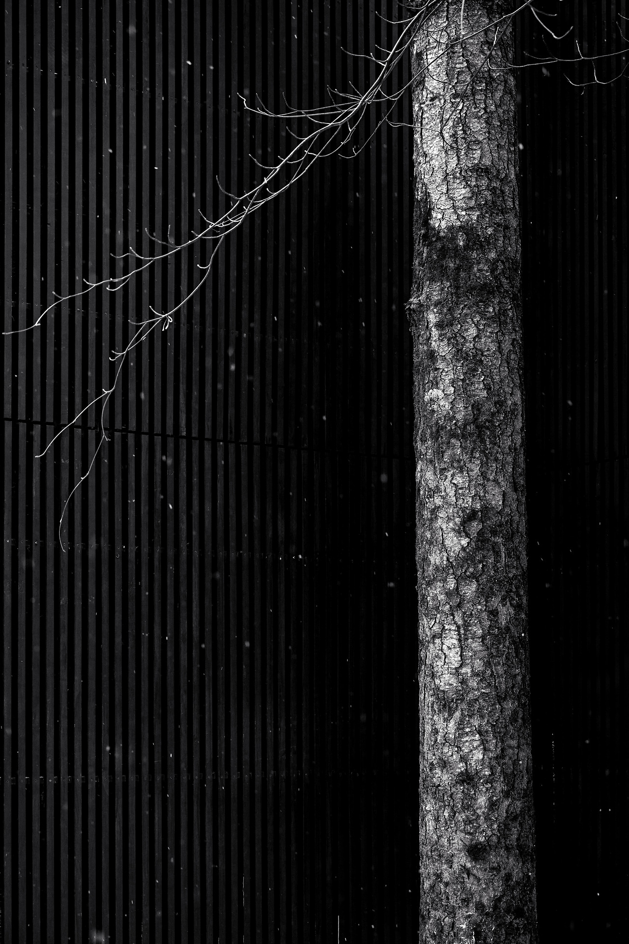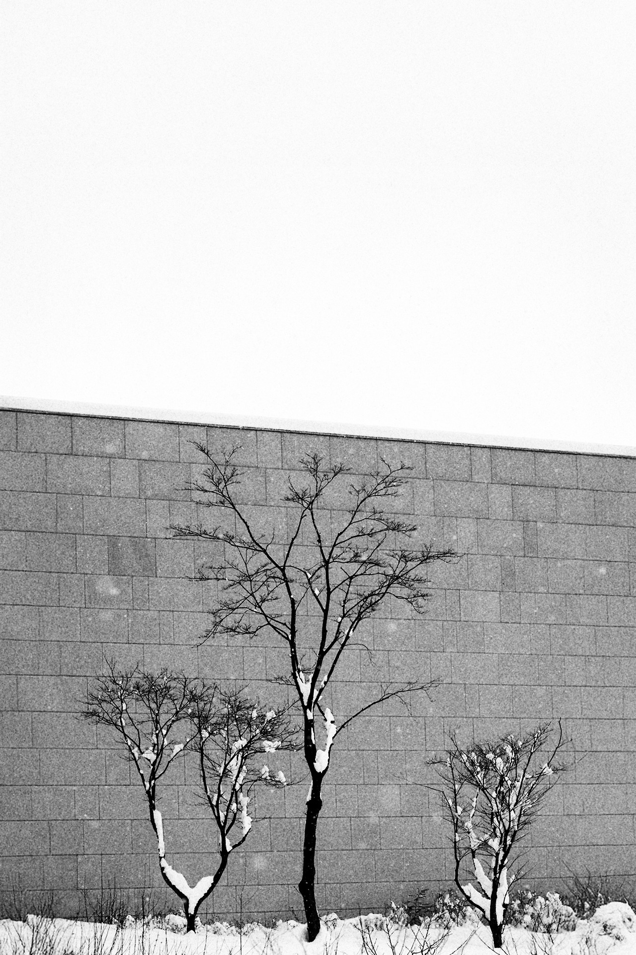 하얀 하늘과 회색 담벼락, 그리고 검은 나무들의 조합은 그야말로 완벽한 구도입니다. 별다를 것 없어 보이는 이 순간 앞에서 카메라 셔터를 누르는 내 손가락은 이상하게 떨렸습니다. 마치 아주 특별한 비밀을 간직한 듯한 느낌이 밀려왔습니다.