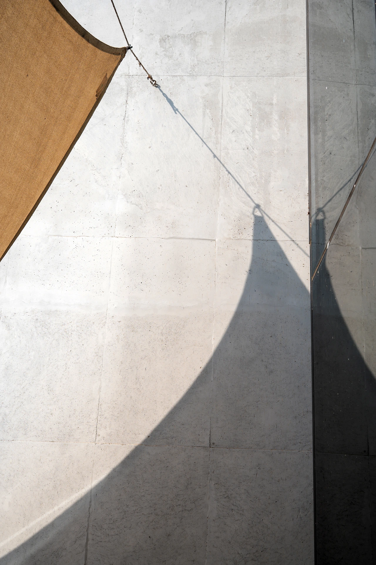 북한강변 카페에 도착했을 때, 겨울 햇살은 천장에서 바닥까지 부드러운 그림자의 선을 그려내고 있었습니다. 황토색 천막이 난간에 기대어 있고, 그 천막을 고정하는 줄이 만드는 그림자가 콘크리트 벽면에 또 다른 이야기를 써내려 가고 있었습니다.