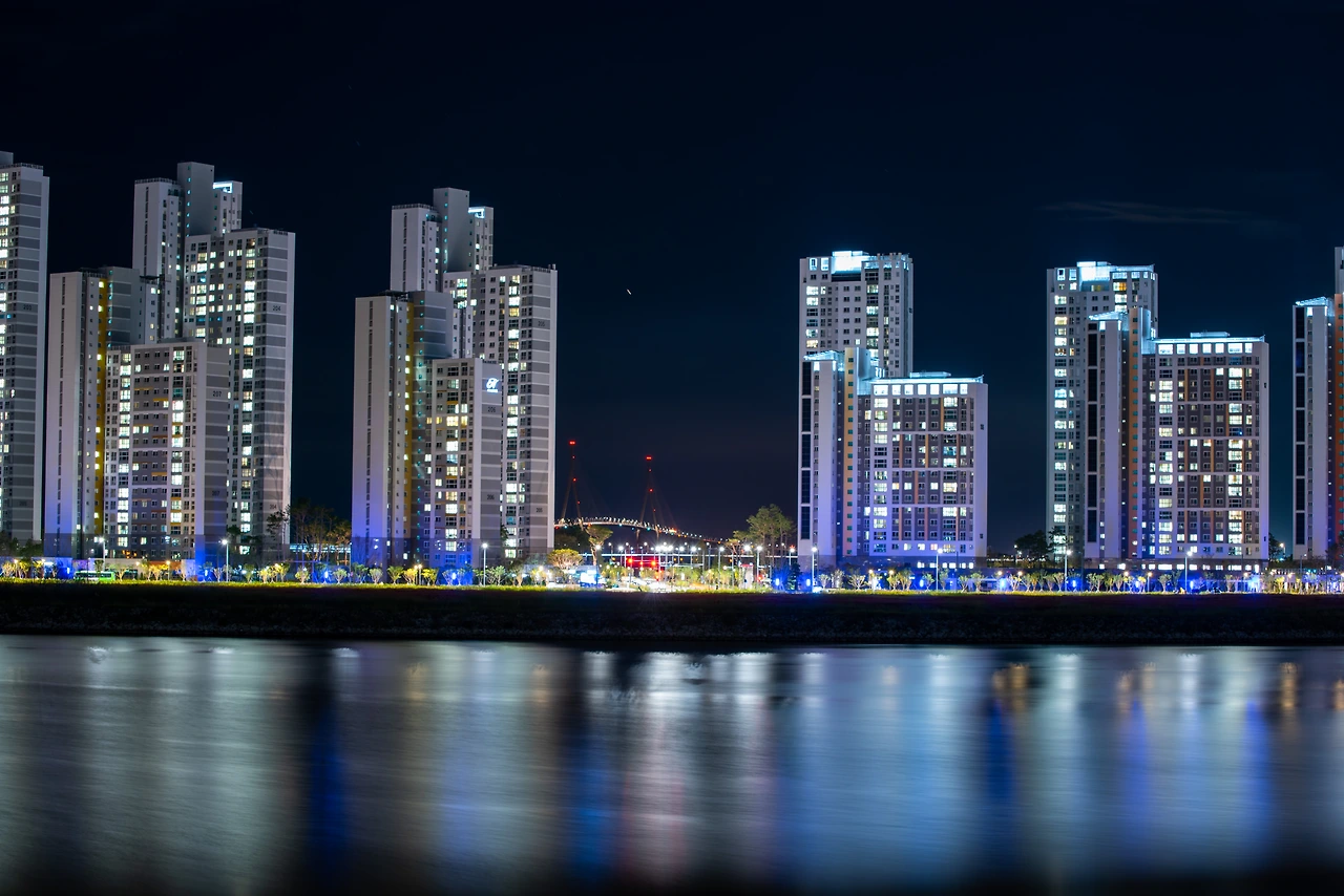 몸을 틀어 뒤를 돌아보니 인천 축구전용경기장이 보입니다. 경기장 주변으로 구도심과 대조되는 높은 아파트들이 올라가고 있습니다. 저 아파트에 살면 경기는 공짜로 볼 수 있겠다 싶어 기분이 좋아집니다. 스마트폰의 초광각 렌즈와 망원렌즈를 이용해서 느낌을 살려봅니다. 표준으로 촬영해도 스마트폰 표준렌즈 자체가 광각렌즈이기 때문에 광각의 느낌이 납니다. 초광각의 느낌을 살리려고 바닥에 거의 앉아서 촬영을 합니다. 망원으로 촬영된 건물은 왜곡을 약간 잡아 동일한 높이에서 촬영한 것처럼 만들어 줍니다.